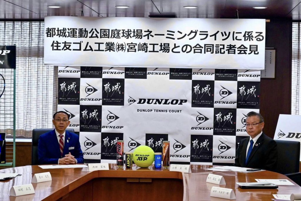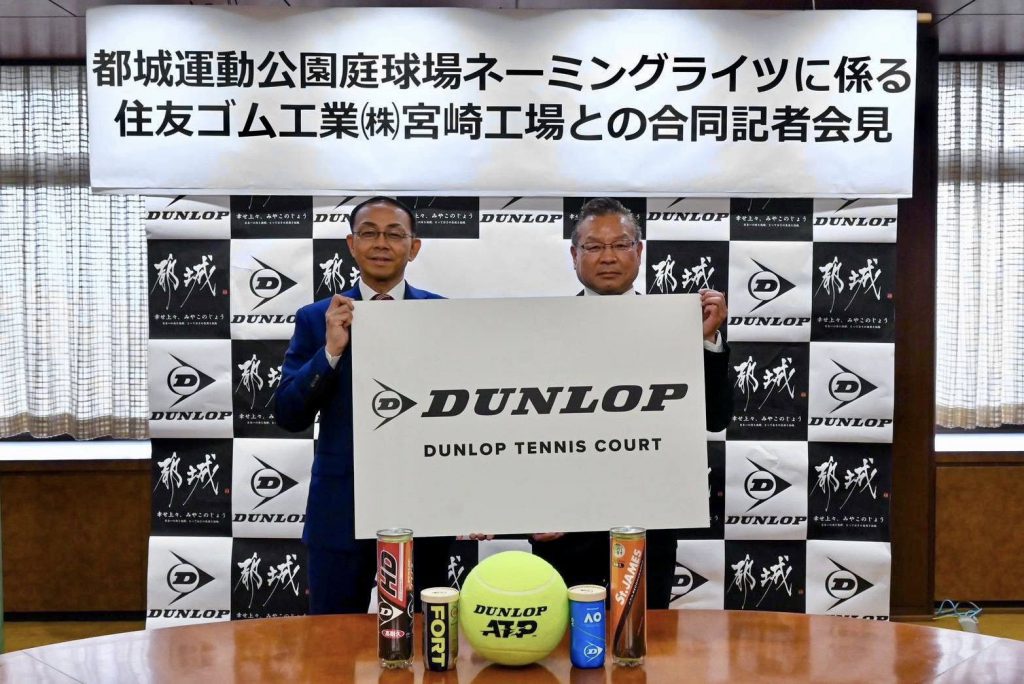 この度、住友ゴム工業(株)宮崎工場様を都城運動公園テニスコートのネーミングライツ・パートナー企業に決定し、