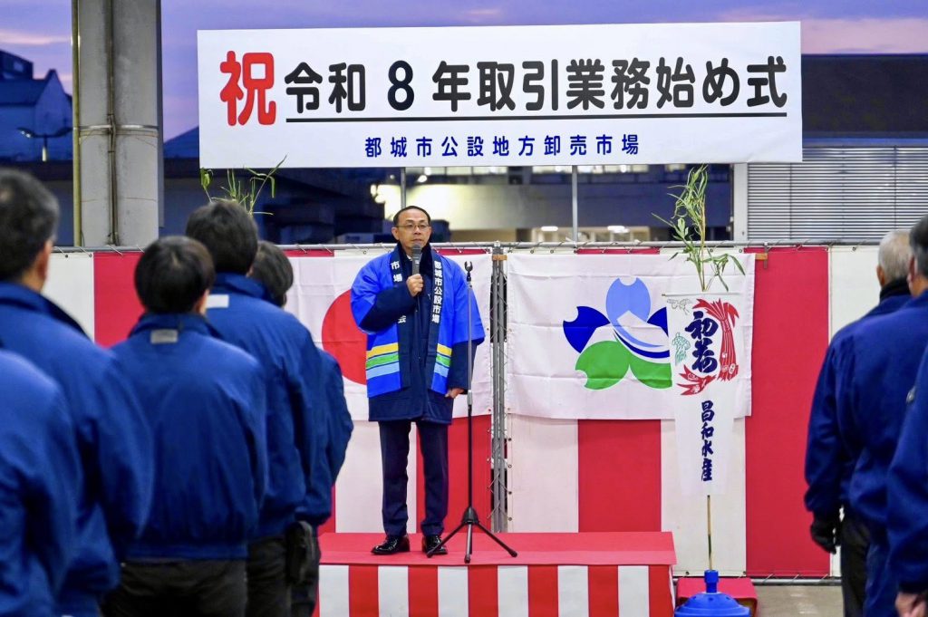 新年初日の営業日である本日(1月5日)は、早朝から卸売市場の取引業務始め式、その後、市役所の仕事始め式、はたちの集い(横市地区)から都城商工会議所主催の賀詞交歓会に出席し、今年1年の思い・展望等について話をさせていただきました。
