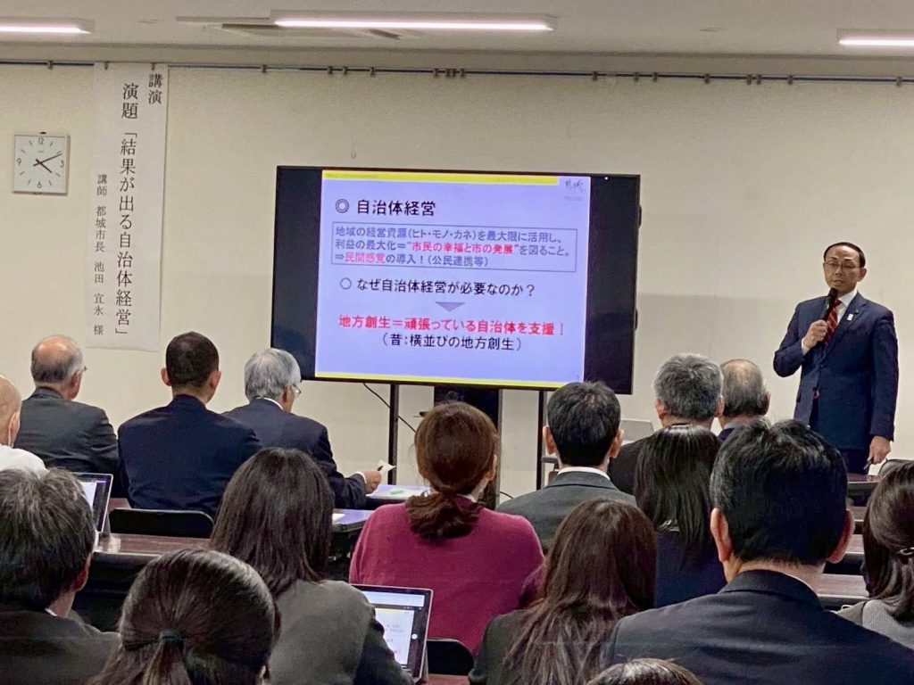 私からは、‟自治体経営の考え方”とそのベースにある‟都城フィロソフィ”についてお話しましたが、職員・議員の皆様から多くのご質問をいただき、私にとっても大変充実した講演となりました。